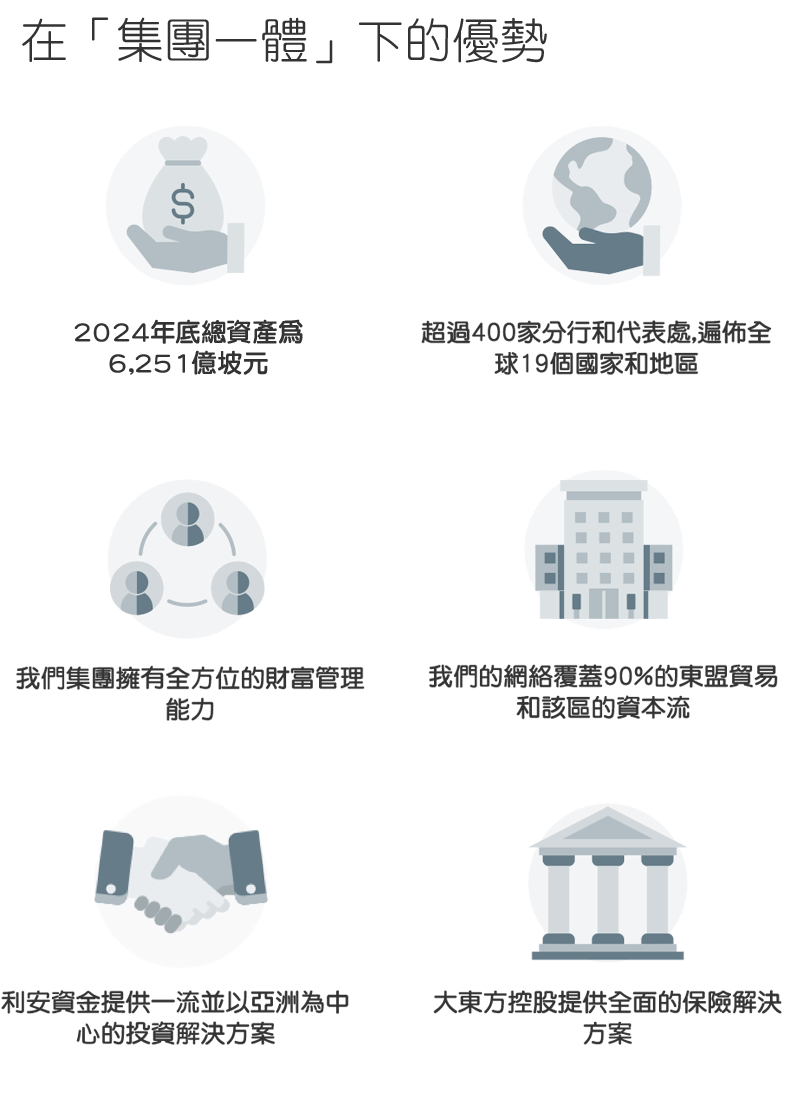 憑藉在亞洲的悠久歷史,我們在東盟和大中華區提供最全方位的服務,並在紐約、倫敦和悉尼等主要經濟體設有辦事處。以「集團一體」策略及深厚的本地知識,助您實現跨地域的理想—無論是個人財富增長還是捕捉商機—「心所向,行致遠」。